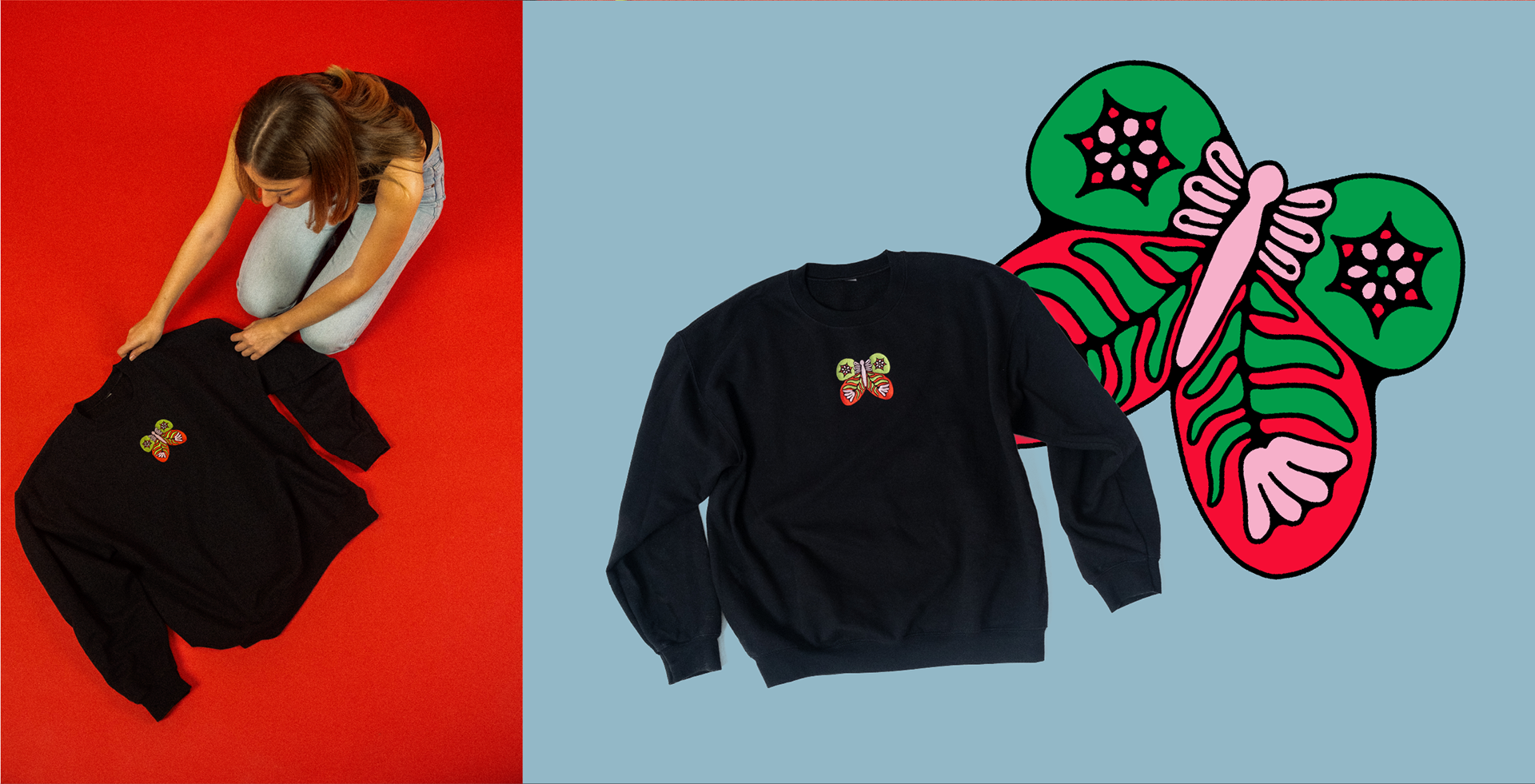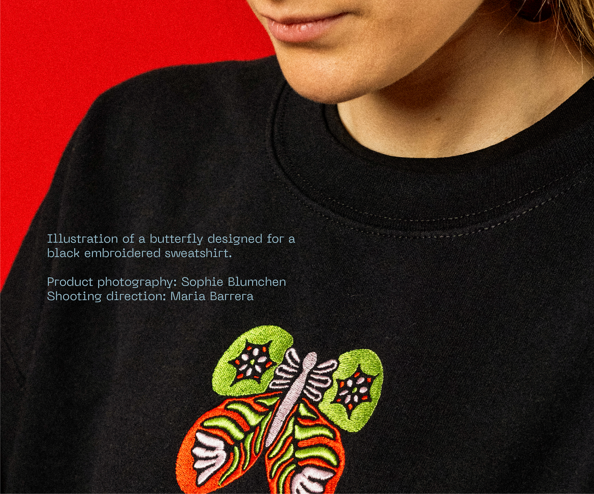 Butterfly Embroidery: Sweatshirt Design & Photography